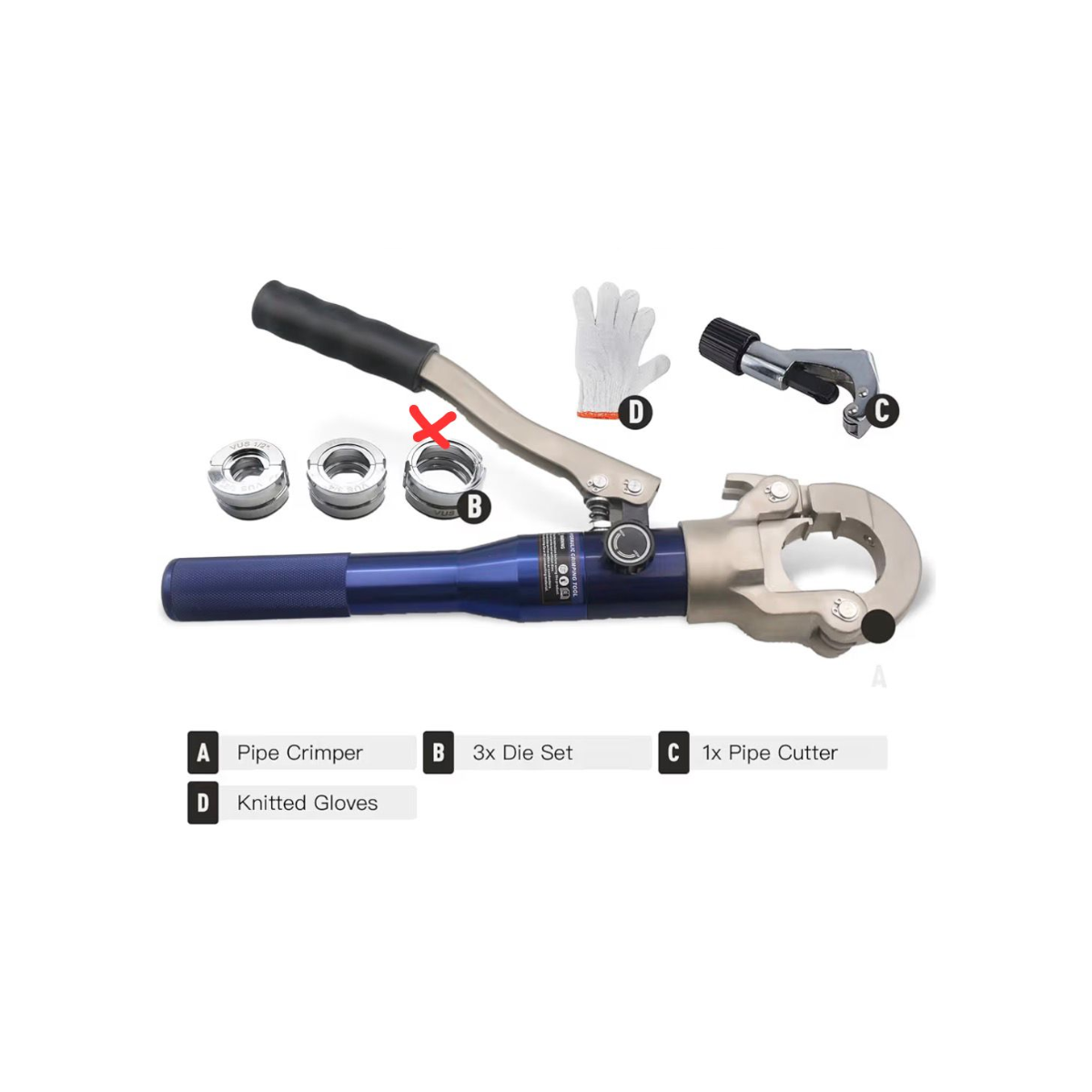 This unit includes the 1/2" and 3/4" dies, making it ideal for common plumbing installations and repairs. Please note the 1" die is missing. The tool remains fully functional and is a great value option for professionals or DIY users.