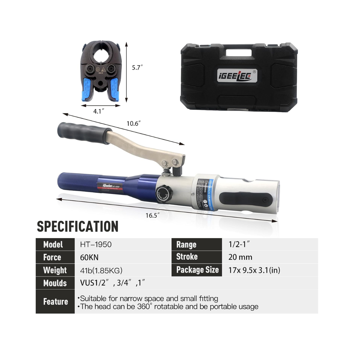 Complete copper pipe fittings quickly and efficiently with the iGeelee Hydraulic Copper Pipe Press Tool. Designed for plumbers, HVAC technicians, and professional installers, this powerful hydraulic pressing tool allows secure pipe connections without the need for soldering.